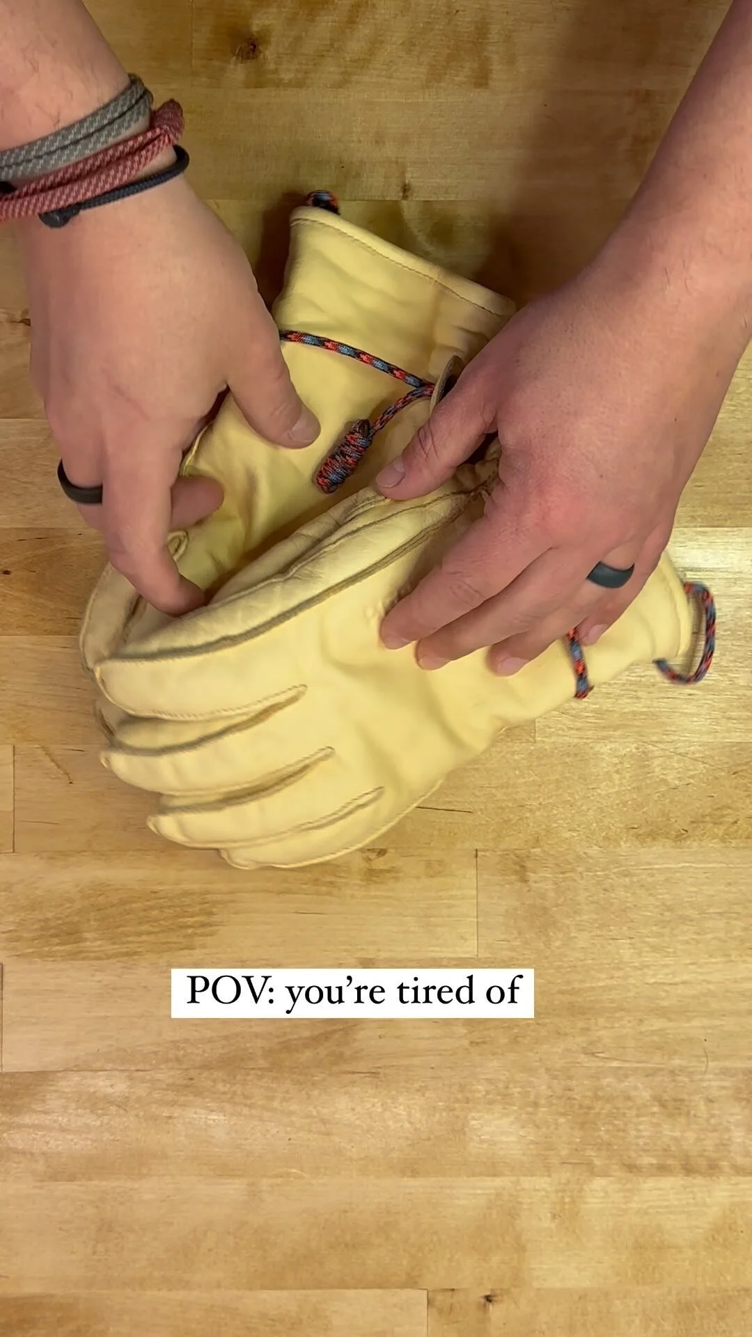 A few of our gloves came with leashes (the really expensive ones), but most didn’t. Wild.